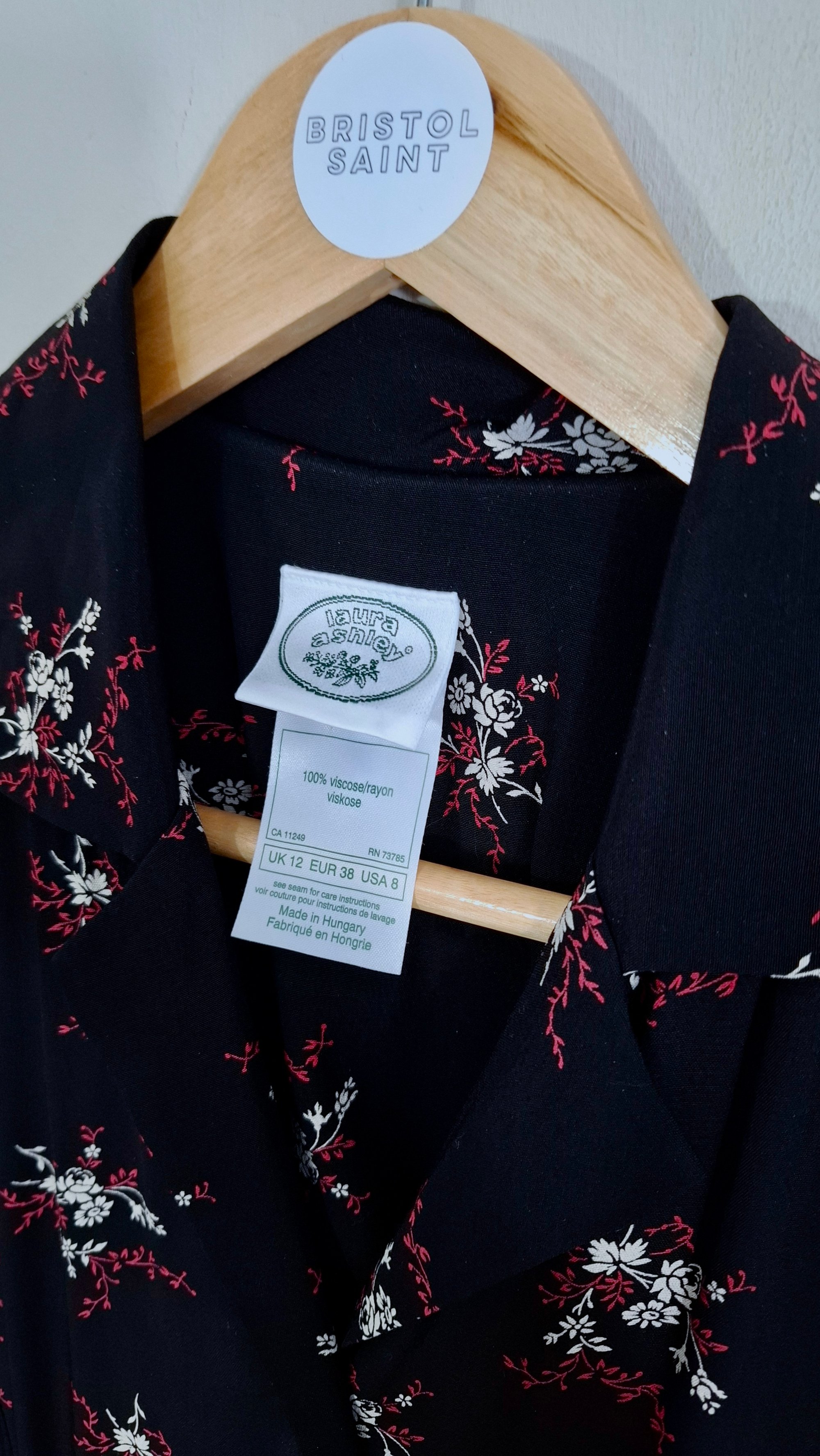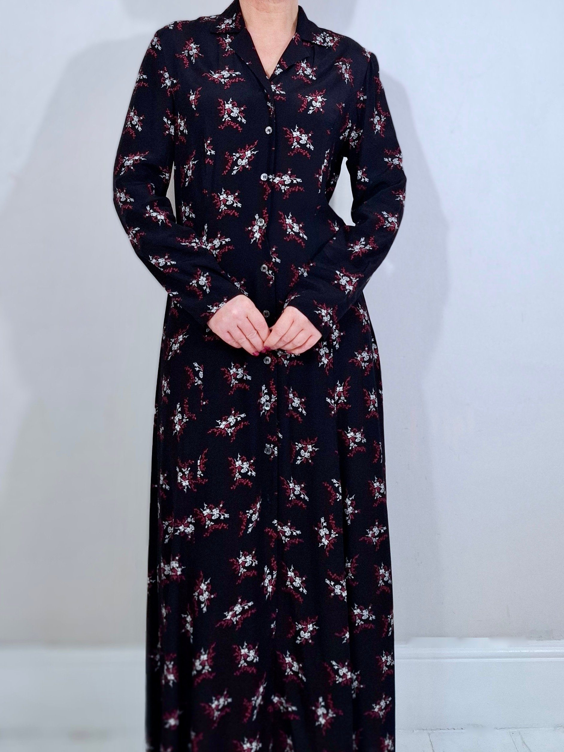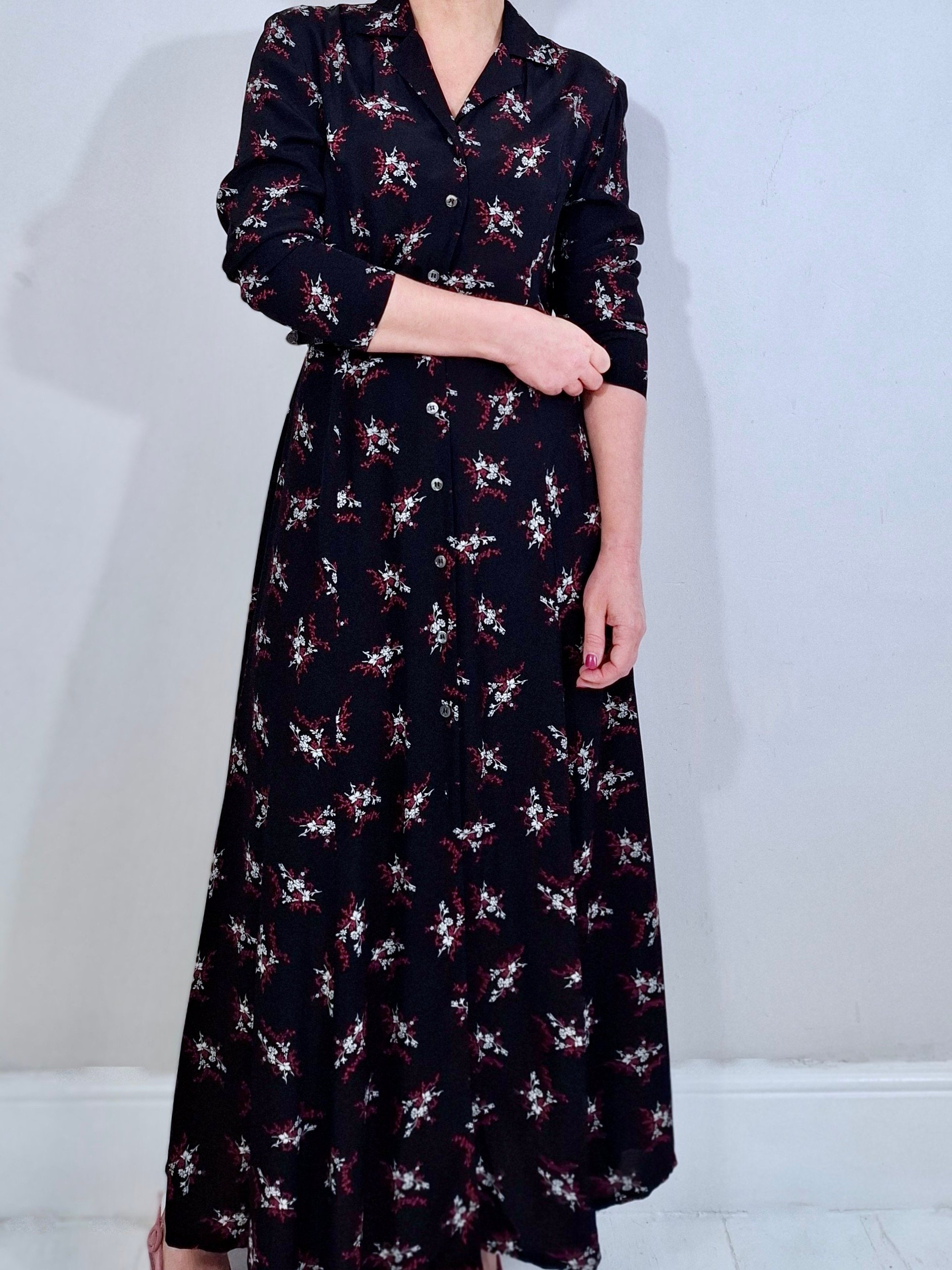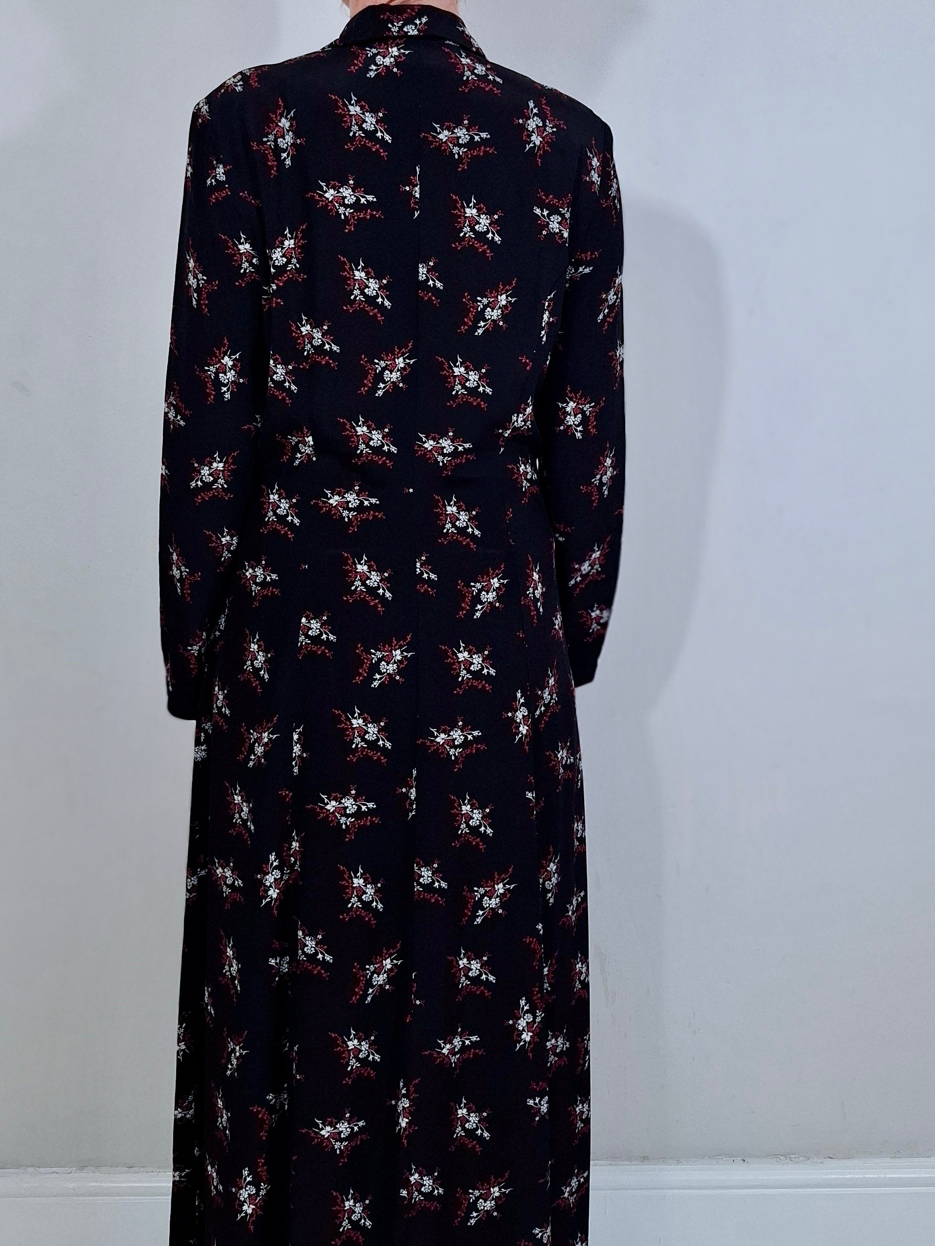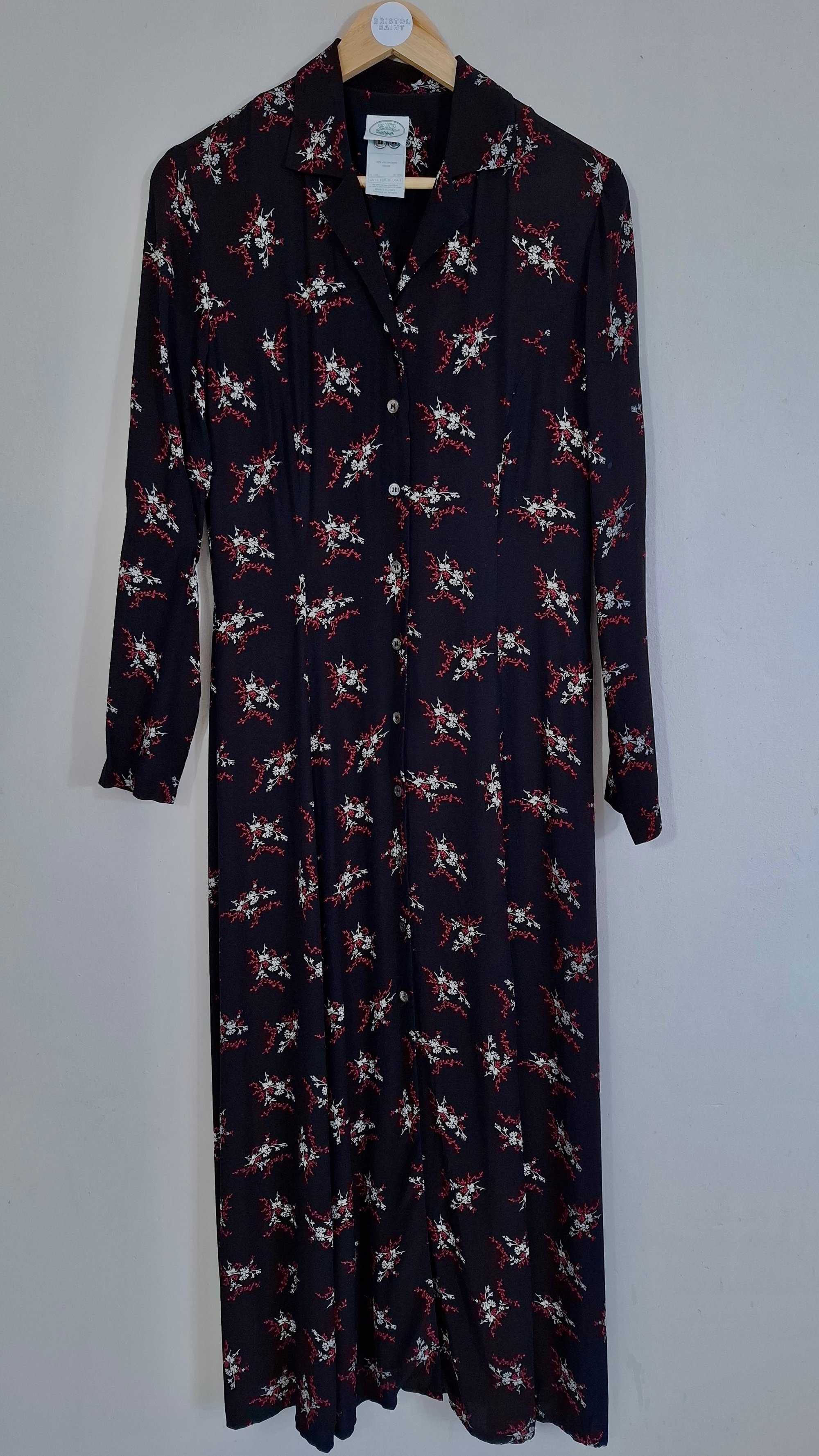 Vintage 90's Laura Ashley Dark Floral Button Down Shirt Maxi Dress (Size 12-14)